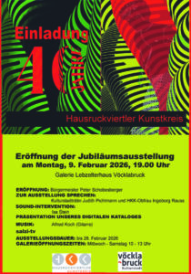Das Jubiläum wird mit einer großen Gruppenausstellung gefeiert, die am Montag, 9. Februar 2026 in der Stadtgalerie Lebzelterhaus eröffnet wird und zu der alle Interessierten herzlich eingeladen sind.