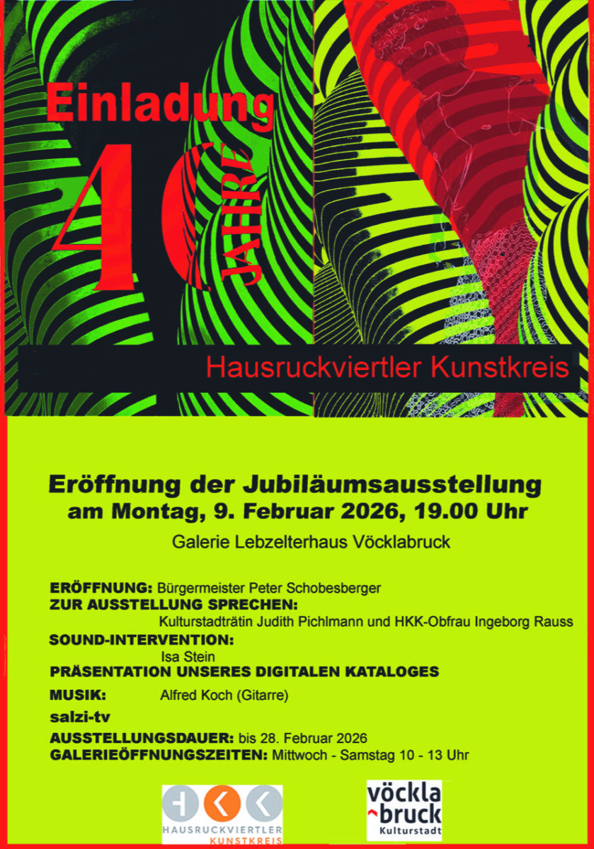 Das Jubiläum wird mit einer großen Gruppenausstellung gefeiert, die am Montag, 9. Februar 2026 in der Stadtgalerie Lebzelterhaus eröffnet wird und zu der alle Interessierten herzlich eingeladen sind.