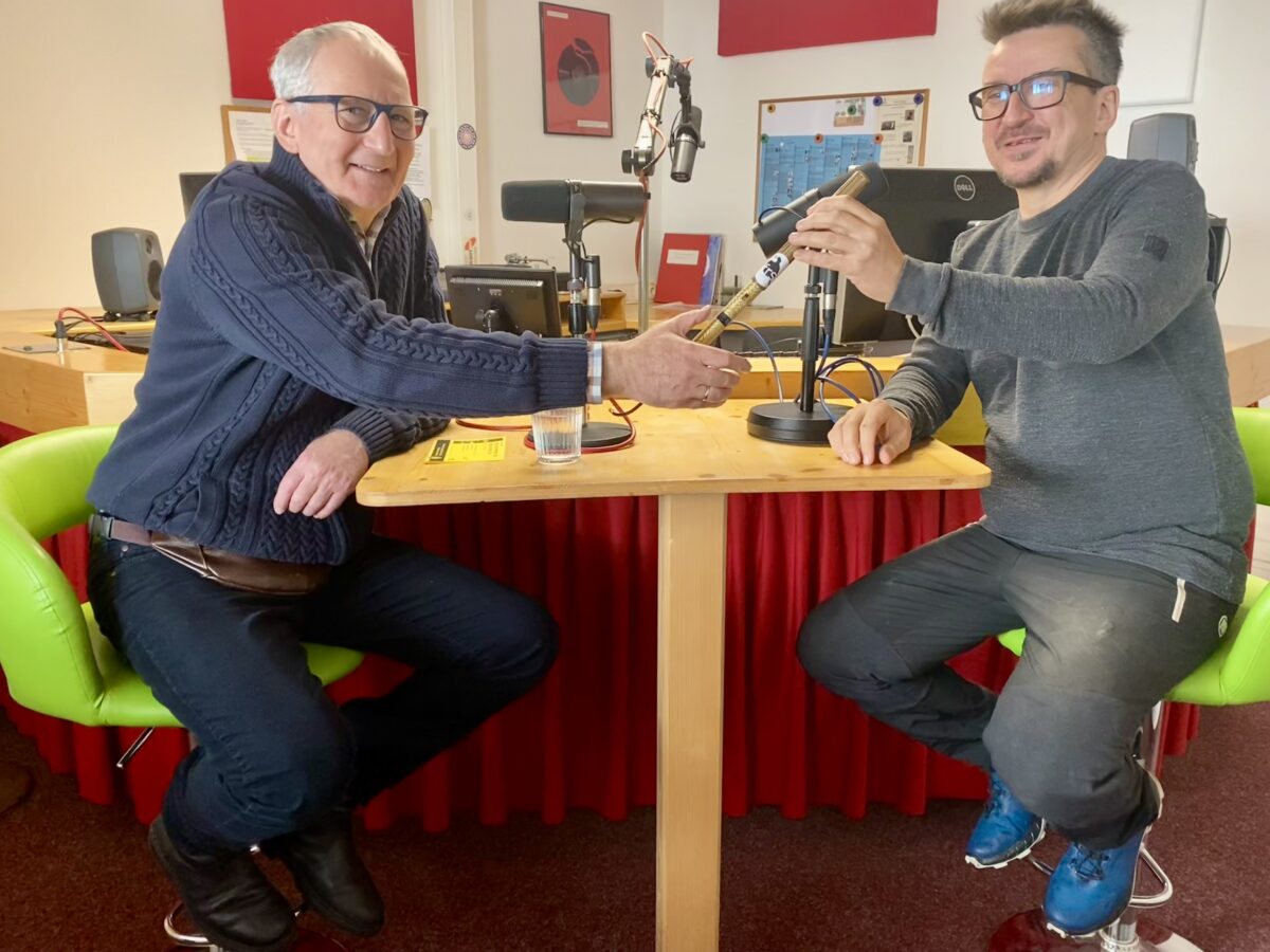 01: MusikMosaik an Radio Jazzclub: Am 26. Jänner machte das goldene FRS Staffelmikrofon seinen ersten Stationswechsel! Überreicht wurde es von Christian Kapun, der die Sendung MusikMosaik und Voll.auf.Musik gestaltet, an Emilian Tantana von der Sendung Radio Jazzclub. Neben der Radioarbeit haben die beiden musikaffinen Bad Ischler auch ganz viele andere Berührungspunkte, wobei die Freude an der Musik und das Veranstalten von Konzerten der große gemeinsame Nenner ist. Zur Staffelübergabe haben sie jeweils ein Musikstück und allerhand Pläne für die Zukunft mitgebracht.