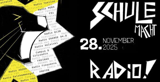 Freitag 28.11. – 08:30-17:00 Uhr: Schule macht Radio – Am 28. November 2025 übernehmen Schüler:innen aus ganz Österreich wieder das Radioprogramm der freien Radios! Jeder der 15 freien Radio Sender aus Österreich steuert einen Beitrag ...