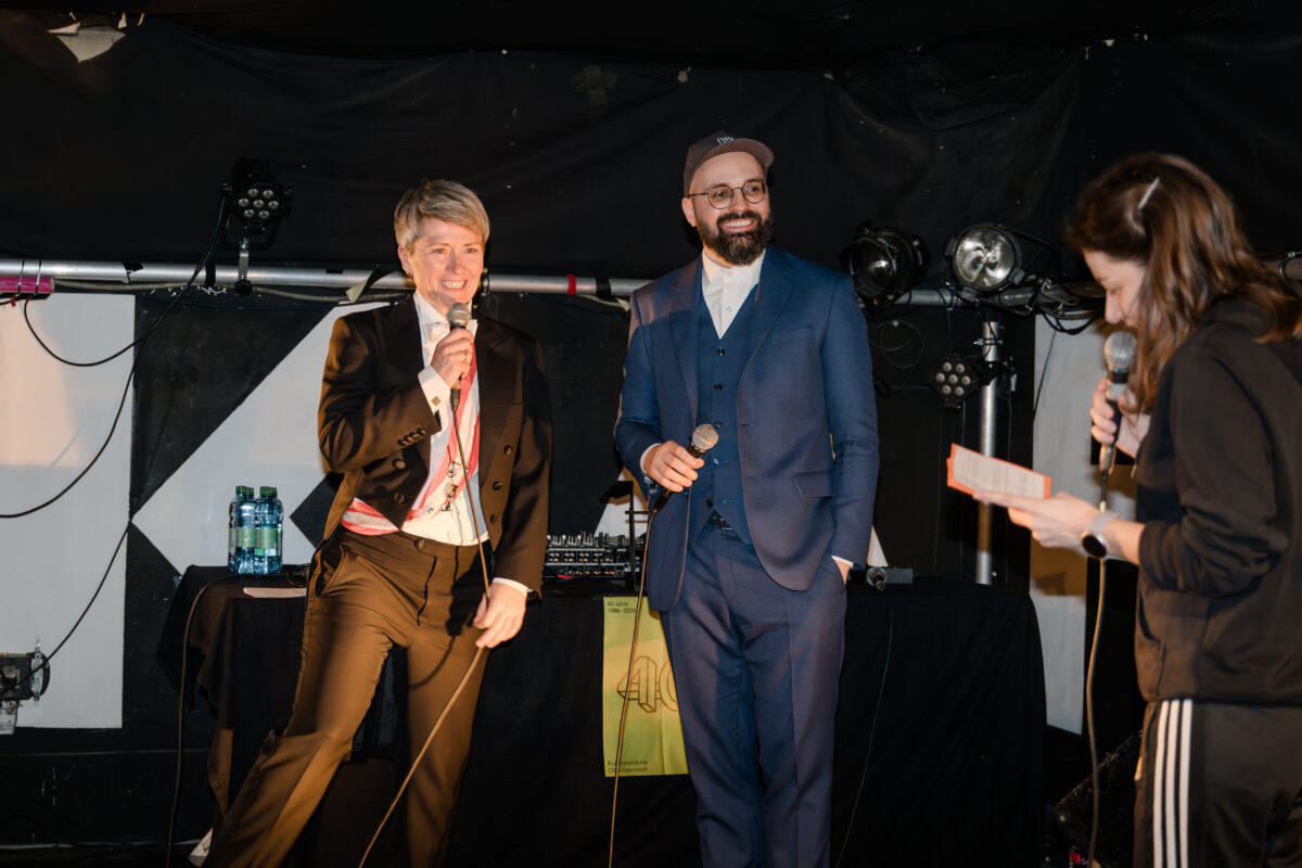 1986 wurde die Kupf OÖ, die Kulturplattform Oberösterreich gegründet. Die Interessenvertretung von unterschiedlichen Kunst- und Kulturinitiativen im Land ist damit 40 Jahre alt geworden und hat ein lebendiges Netzwerk mit ständig wachsender Mitgliederzahl geschaffen. Und sie hat in den letzten vier Jahrzehnten auch immer wieder kulturpolitische Akzente setzen können. Vergangenes Wochenende ist das in der KAPU, im Kulturzentrum in der Kapuzinergasse in Linz gebührend und auch offiziell gefeiert worden. Zur aktuellen Lage, der Bedeutung und den Aufgaben der Kupf spricht der Geschäftsführer Thomas Diesenreiter im Interview. Foto (c)_Moritz_Reisinger: Thomas Diesenreiter mit den Moderatorinnen Dominika Meindl und Anna Rieder.